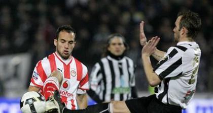 6' Απειλητική η πρώτη επίσκεψη του ΠΑΟΚ στα καρέ του Ολυμπιακού. Σέντρα του Κοντρέρας από τα δεξιά, κεφαλιά του Μουσλίμοβιτς από το ύψος του πέναλτι, η μπάλα περνά άουτ.