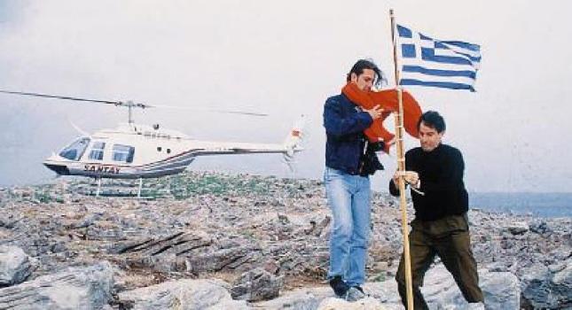 26 Ιανουαρίου 1996: Δύο απεσταλμένοι της τουρκικής εφημερίδας «Χουριέτ», μεταβαίνουν με ελικόπτερο στη Μεγάλη Ίμια. Υποστέλλουν τη γαλανόλευκη και υψώνουν την τουρκική σημαία. Οι εικόνες μεταδίδονται τηλεοπτικά στην Ελλάδα και την Τουρκία.