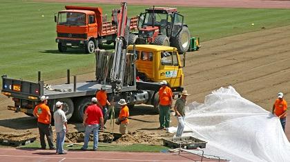 Οι μπουλντόζες έκαναν την Τρίτη την εμφάνισή τους στον αγωνιστικό χώρο του Ολυμπιακού Σταδίου της Αθήνας προκειμένου να ξεκινήσει η ανακατασκευή του χλοοτάπητα. Το ΟΑΚΑ μοιάζει πλέον με εργοτάξιο και τόσο ο Παναθηναϊκός όσο κυρίως η ΑΕΚ, αναμένουν την όσο το δυνατόν πιο σύντομη περάτωση του έργου ώστε να μπορούν να χρησιμοποιήσουν απερίσπαστοι την έδρα τους.