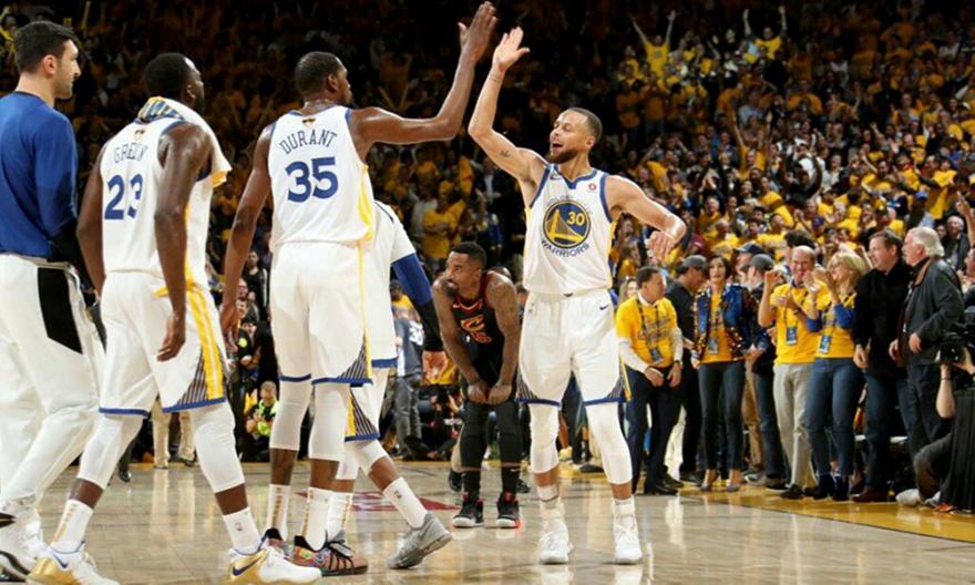 Οι Γουόριορς έκαναν το πρώτο βήμα για την κατάκτηση και του φετινού πρωταθλήματος κερδίζοντας στην παράταση 124-114 τους Καβαλίερς στο Όκλαντ μετά από ένα καταπληκτικό ματς. Οι φιλοξενούμενοι που είχαν τον Λεμπρόν Τζέιμς στη ζώνη του λυκόφωτος με 51 πόντους (16/25 δίποντα, 3/7 τρίποντα, 10/11 βολές), 8 ριμπάουντ και 8 ασίστ, έχασαν χρυσή ευκαιρία να πάρουν το ματς στην κανονική διάρκεια, όταν ο Τζορτζ Χιλ αστόχησε σε βολή για το προβάδισμα και ο Τζέι Αρ Σμιθ που πήρε το επιθετικό ριμπάουντ «θόλωσε» κι αντί να σουτάρει έκανε… καθυστερήσεις βγάζοντας από τα ρούχα του τον «βασιλιά».