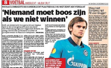 Στα... φιλότιμο και την εθνική συνείδηση έχουν προσπαθήσει να «ρίξουν» τον Νικόλας Λομπάερτς οι Βέλγοι. Ο συμπατριώτης τους αμυντικός αγωνίζεται απόψε με τη Ζενίτ απέναντι στην ΑΕΚ και η Άντερλεχτ ελπίζει σε νίκη της ρωσικής ομάδας για να προκριθεί εκείνη, εφόσον νικήσει την αδιάφορη Χάιντουκ στις Βρυξέλλες. Ο Βέλγος διεθνής, ωστόσο, ήταν ξεκάθαρος.