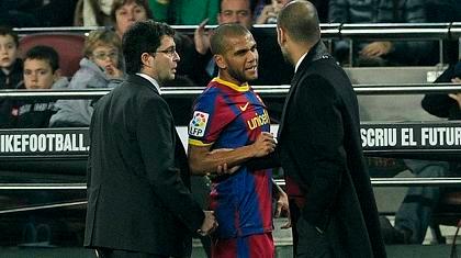 Ο Άλβες θα υποβληθεί σε εξετάσεις για να διαπιστωθεί η σοβαρότητα της κατάστασής του. Έτσι είναι αμφίβολο αν θα αγωνιστεί στον αγώνα-ρεβάνς των προημιτελικών του Κυπέλλου Ισπανίας με την Μπέτις την Τετάρτη και στο παιχνίδι του ερχόμενου Σαββάτου με τη Ράσινγκ Σανταντέρ στο «Καμπ Νου» για την Primera Division.