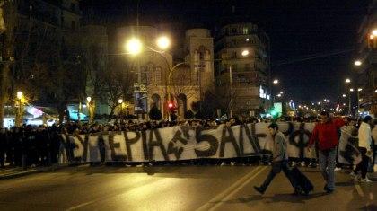 Αρκετοί οπαδοί του ΠΑΟΚ διαδήλωσαν στους κεντρικούς δρόμους της Θεσσαλονίκης εκφράζοντας την αντίδρασή τους στην φυλάκιση των δύο οπαδών της ομάδας και ζητώντας άμεσα να αφεθούν ελεύθεροι. Οι οπαδοί του ΠΑΟΚ συγκεντρώθηκαν στην Καμάρα και άρχισαν την πορεία τους στους κεντρικούς δρόμους πετώντας φέιγ βολάν τα οποία ανέγραφαν: «Λευτεριά στους οπαδούς» και «Άμεση αποφυλάκιση των οπαδών μας».