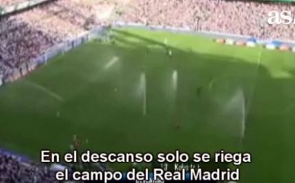 Ένα περίεργο περιστατικό συνέβη στο ημίχρονο της χθεσινής αναμέτρησης της Μπιλμπάο με τη Ρεάλ Μαδρίτης στο «Σαν Μαμές» (0-3). Το σύστημα ποτίσματος του αγωνιστικού χώρου ενεργοποιήθηκε στην ανάπαυλα του ημιχρόνου, αλλά μόνο στην πλευρά που επρόκειτο να επιτεθούν οι Βάσκοι και να αμυνθούν οι Μαδριλένοι στο δεύτερο ημίχρονο.