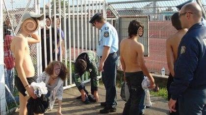 Η φωτογραφία που βλέπετε, είναι από τον ποδοσφαιρικό αγώνα Πιερικός – ΟΦΗ για τη δεύτερη Εθνική κατηγορία, με τους αστυνομικούς να κάνουν εξονυχιστικό έλεγχο σε φιλάθλους, κατά την είσοδο τους στο γήπεδο! Για την ακρίβεια δεν πρόκειται για έλεγχο, αλλά για στριπτίζ, μέρα μεσημέρι. Kαι χωρίς τους ήχους μουσικής.
