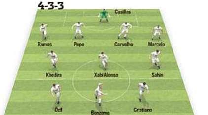 Κάτω από τα δοκάρια παραμένει φυσικά ο Ίκερ Κασίγιας και μπροστά του από δεξιά προς τα αριστερά θα έχει τους Ράμος, Πέπε, Καρβάλιο και Μαρσέλο. Στην κορυφή της επίθεσης θα βρίσκεται ο Μπενζεμά, πλαισιωμένος από τους πολυσύνθετους Κριστιάνο Ρονάλντο και Μεσούτ Εζίλ.
