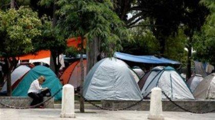 Συνεργεία του δήμου, υπό την κάλυψη των αστυνομικών, «ξήλωσαν» τα αντίσκηνα και μετέφεραν όλα τα αντικείμενα που βρίσκονταν στην πλατεία σε φορτηγά που βρίσκονταν στην Φιλελλήνων.