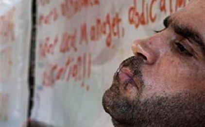 Ο 46χρονος πήγε σήμερα το πρωί έξω από τον σταθμό υποδοχής τους παλαιού λιμανιού της πόλης, κατασκήνωσε, έραψε το στόμα του και άρχισε απεργία πείνας μέχρι να δοθεί λύση στο πρόβλημα που αντιμετωπίζει, όπως δημοσιεύει το thebest.