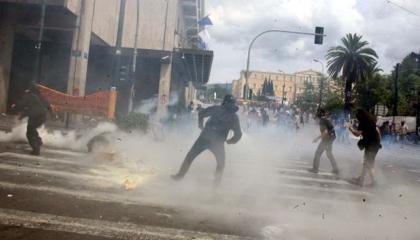 Μεγάλης έκτασης επεισόδια και πάλι από το μεσημέρι στην πλατεία Συντάγματος. Νεαροί διαδηλωτές συγκρούστηκαν με πέτρες, ξύλα και μολότοφ με τα μέλη της περιφρούρησης μιας ογκώδους συγκέντρωσης του ΠΑΜΕ. Με καθυστέρηση η εμπλοκή των ΜΑΤ στις μάχες σώμα με σώμα. Πληροφορίες για έναν σοβαρά τραυματία.