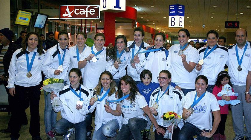Από συγκίνηση, χαρά και υπερηφάνεια γέμισε την Κυριακή το απόγευμα το «Ελ. Βενιζέλος» στην άφιξη της αποστολή της Εθνικής ομάδας πόλο των γυναικών από το Αϊντχόφεν, όπου οι κοπέλες κατέκτησαν τη δεύτερη θέση στο Ευρωπαϊκό Πρωτάθλημα της ολλανδικής πόλης. Τα «ασημένια» κορίτσια επέστρεψαν στην πατρίδα μετά από δέκα ημέρες απουσίας και, παρά την πικρία που τους έμεινε για την ήττα στον τελικό από την Ιταλία, δεν θα μπορούσαν παρά να είναι χαρούμενα, αφού για τρίτη συνεχόμενη φορά έδωσαν το «παρών» σε ένα μεγάλο τελικό.