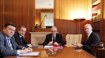 Ο Πρωθυπουργός και οι πολιτικοί αρχηγοί συναντήθηκαν και εξέτασαν σε βάθος το περιεχόμενο του νέου οικονομικού προγράμματος που συνοδεύει τη χρηματο¬οικονομική στήριξη της χώρας για τα επόμενα χρόνια. Συμφώνησαν σε όλα τα σημεία του προγράμματος με εξαίρεση ένα το οποίο απαιτεί περαιτέρω επεξεργασία και συζήτηση με την τρόικα. Η συζήτηση αυτή θα γίνει αμέσως ώστε να ολοκληρωθεί η συμφωνία ενόψει της συνεδρίασης του Eurogroup.