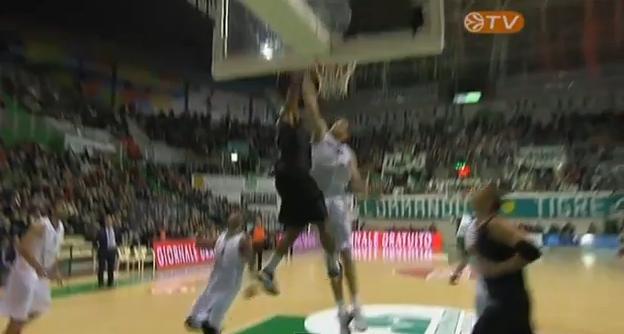 Ο Ολυμπιακός έχει διπλή παρουσία, στο «10» με το κάρφωμα του Πέρο Άντιτς μετά από ασίστ του Τζόι Ντόρσεϊ και στο «8» με τον τελευταίο να κλέβει και να καρφώνει εντυπωσιακά.