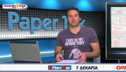 Με την εκπομπή Paper Talk, σας μεταφέρει όλα τα πρωτοσέλιδα του αθλητικού Τύπου της Παρασκευής (23/03), με τον Σωτήρη Κωσταβάρα να αναλύει τα κυριότερα θέματά τους.