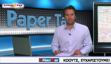 Με την εκπομπή Paper Talk, σας μεταφέρει όλα τα πρωτοσέλιδα του αθλητικού Τύπου της Πέμπτης (19/4), με τον Σωτήρη Κωσταβάρα να αναλύει τα κυριότερα θέματά τους.