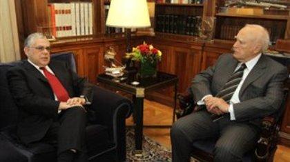 Ο πρωθυπουργός Λουκάς Παπαδήμος είχε έκτακτη συνάντηση με τον Πρόεδρο της Δημοκρατίας κ. Κάρολο Παπούλια στο προεδρικό Μέγαρο και, όπως είναι προφανές, στο επίκεντρο τέθηκαν οι πολιτικές εξελίξεις τις οποίες παρακολουθεί με αγωνία η κοινή γνώμη, το 60% της οποίας επιθυμεί, σύμφωνα με νέα δημοσκόπηση, τη συγκρότηση κυβέρνησης συνεργασίας.