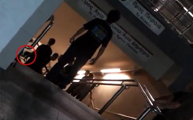 Στο βίντεο φαίνονται οι άγνωστοι που επιτίθενται σε κάποιον στα σκαλιά του σταθμού που οδηγούν προς τις αποβάθρες του Μετρό. Φαίνεται ξεκάθαρα σε κάποιο σημείο ότι τον χτυπούν και τον κλωτσούν κι εκείνος ακούγεται να φωνάζει βοήθεια.