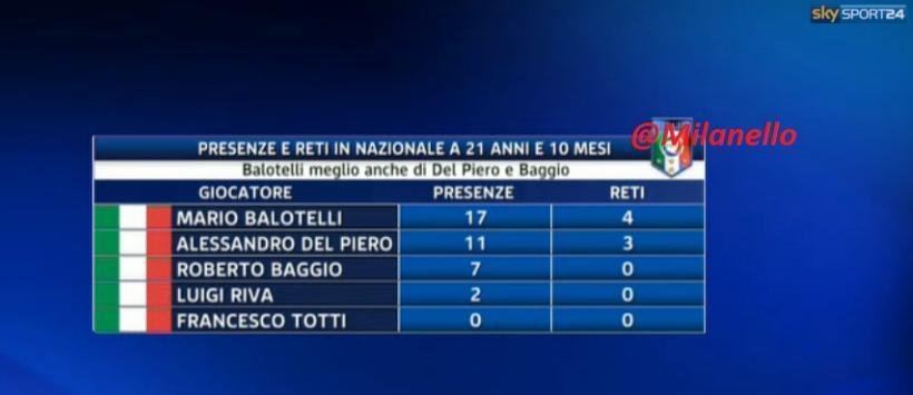 Πιο συγκεκριμένα ο «Σούπερ Μάριο», 21 ετών και 10 μηνών σήμερα, αριθμεί 17 συμμετοχές με τη «σκουάντρα ατζούρα» και 4 γκολ, εκ των οποίων τα 2 σημαντικότατα που πέτυχε στον ημιτελικό κόντρα στη Γερμανία και έστειλαν τη χώρα του να διεκδικεί τον τίτλο της πρωταθλήτριας Ευρώπης.