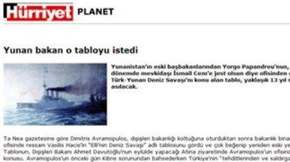Χαρακτηριστικό είναι το δημοσίευμα, με τίτλο: «Ο Έλληνας υπουργός ζήτησε και πάλι τον πίνακα» της εφημερίδας «Χουριέτ», που θέτει το προκλητικό ερώτημα: «Άραγε θα βρίσκεται εκεί ο πίνακας αυτός τον Σεπτέμβριο, που θα επισκεφθεί ο Αχμέτ Νταβούτογλου τον Έλληνα ομόλογό του;».