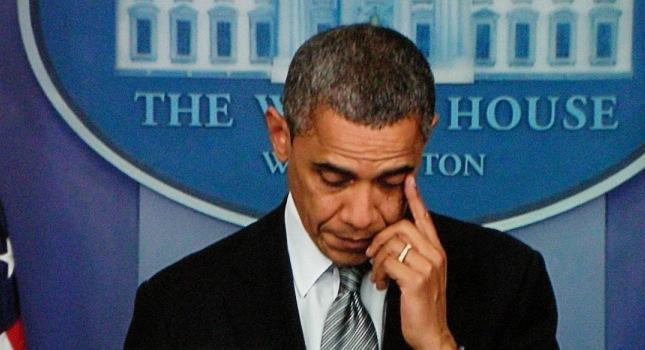 Η φωνή του Μπαράκ Ομπάμα «σπάει». Μετά από μια παύση που υποδηλώνει την τραγικότητα των στιγμών, ο πρόεδρος δεν μπορεί να συγκρατήσει το δάκρυ του για τα θύματα της ανείπωτης τραγωδίας.