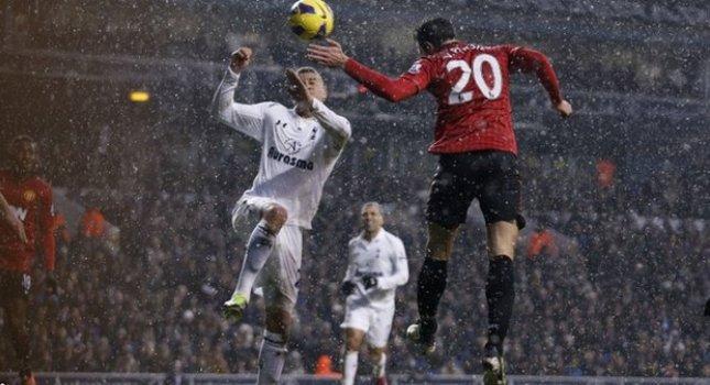 Με τον Ρόμπιν Φαν Πέρσι στην επίθεση της Μάντσεστερ Γιουνάιτεντ, πλέον καμία ομάδα δεν μπορεί να γνωρίζει αν θα πάρει τελικά ό,τι διεκδικεί στον αγωνιστικό χώρο. Με το χιόνι να πέφτει ασταμάτητα, η Τότεναμ κατάφερε να ελέγξει το ρυθμό του αγώνα, να κυκλοφορήσει τη μπάλα, να φανεί καλύτερη από τους «κόκκινους διαβόλους», αλλά οι οπαδοί της, περισσότερο ανησύχησαν παρά απέκτησαν αισιοδοξία. Στο 12ο λεπτό, ο Φαν Πέρσι έστειλε άουτ τη μπάλα από σέντρα του Τζόουνς και ουσιαστικά, έδειξε τι θα συμβεί στη συνέχεια. Μπορεί ο Ντε Χέα να κλήθηκε να κάνει διπλή επέμβαση σε σουτ του Λένον στο 13’ και χλιαρό πλασέ του Ντεφό στην επαναφορά (με τον Άγγλο να υποδεικνύεται σε θέση οφσάιντ), όμως οι παίκτες του Φέργκιουσον θα έβρισκαν τη λύση. Στο 25’, λοιπόν, από σέντρα του Κλέβερλι, ο Φαν Πέρσι έκανε σωστά την κεφαλιά και έγραψε το 1-0. Θα ήταν ό,τι καλύτερο για την Τότεναμ να ισοφαρίσει άμεσα, αλλά ο Ντεφό είδε τον Ντε Χέα να του λέει όχι στην αμέσως επόμενη φάση μετά το γκολ, ενώ ο Ισπανός πορτιέρο αρνήθηκε το γκολ και στον Μπέιλ, στο 41ο λεπτό.