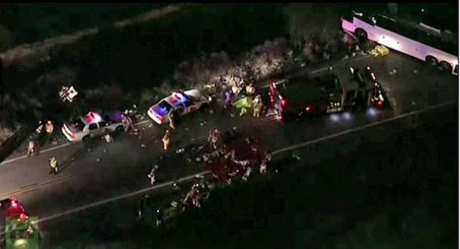 Όλα ξεκίνησαν όταν τουριστικό λεωφορείο συγκρούστηκε, αρχικά με φορτηγάκι και στη συνέχεια με επιβατικό αυτοκίνητο, σε ορεινό αυτοκινητόδρομο στην έρημο της Yucaipa, στην Καλιφόρνια.