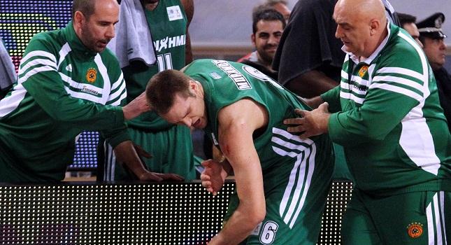Ωστόσο, όταν ξεκίνησαν τα επεισόδια στο Ελληνικό –που οδήγησαν στη διακοπή του ντέρμπι- ήρθε η… σειρά του Μάικ Μπράμος από την πλευρά του Παναθηναϊκού να δεχθεί ένα αντικείμενο στο αριστερό του χέρι και να αποχωρήσει τραυματίας από το παρκέ!