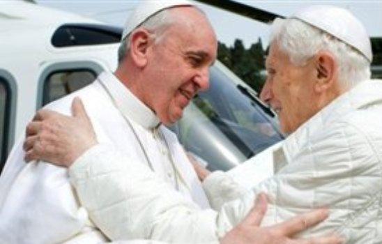 «Είμαστε αδέλφια», δήλωσε ο πάπας Βεργκόλιο, ο οποίος προσευχήθηκε μαζί με τον Γιόζεφ Ράτσιγκερ στο παρεκκλήσι της έπαυλης του Καστέλ Γκαντόλφο, που απέχει τριάντα χιλιόμετρα από την ιταλική πρωτεύουσα.