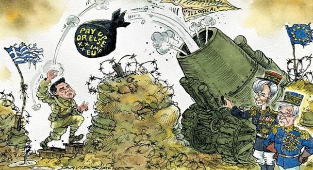 Αυτός ο πόλεμος θα μπορούσε να συνεχιστεί για αρκετές εβδομάδες ακόμη και να καταλήξει στην καταστροφή, την ελληνική χρεοκοπία, σημειώνει ο Guardian, που ρίχνει τις ευθύνες στους δανειστές.