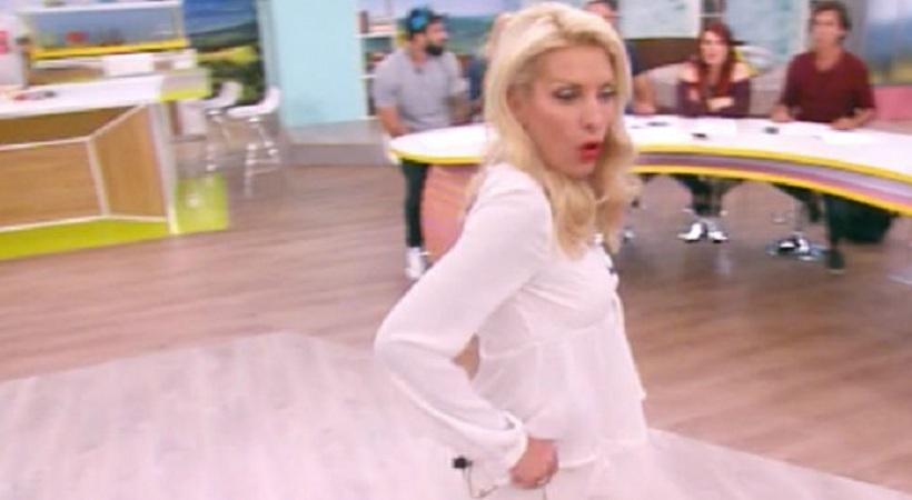 Συγκεκριμένα θέλοντας να επιστρέψει στη θέση της εκεί που την περίμεναν οι συνεργάτες, συνέβη ένα ατύχημα που την έκανε να χάσει τα λόγια της.