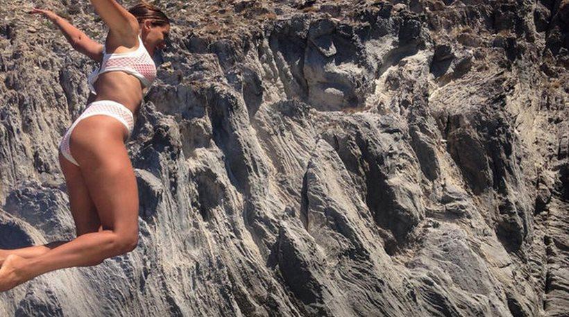 Αυτή τη φορά, όπως μπορείτε να δείτε και από τη φωτογραφία που ανέβασε στον προσωπικό της λογαριασμό στο Instagram, η παρουσιάστρια, έκανε μια ριψοκίνδυνη βουτιά στη θάλασσα και το διασκέδασε πολύ.