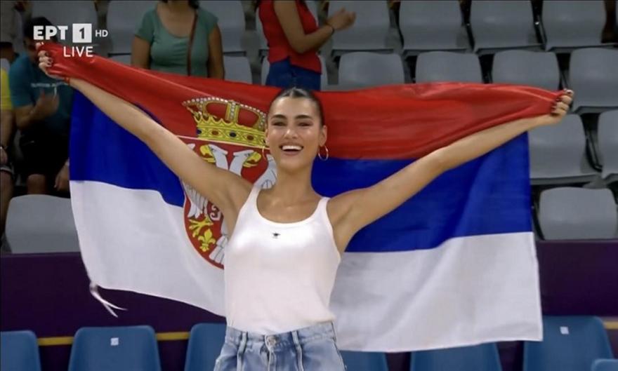 Τα γήπεδα μπάσκετ είναι συχνά πόλος έλξης για όμορφες παρουσίες και το φιλικό της Ελλάδας με την Σερβία δεν αποτέλεσε εξαίρεση. Ο φακός εστίασε αρκετές φορές σε μια όμορφη φίλη της Σερβίας, που παρακολουθούσε τον αγώνα τυλιγμένη με μια σημαία της Σερβίας.