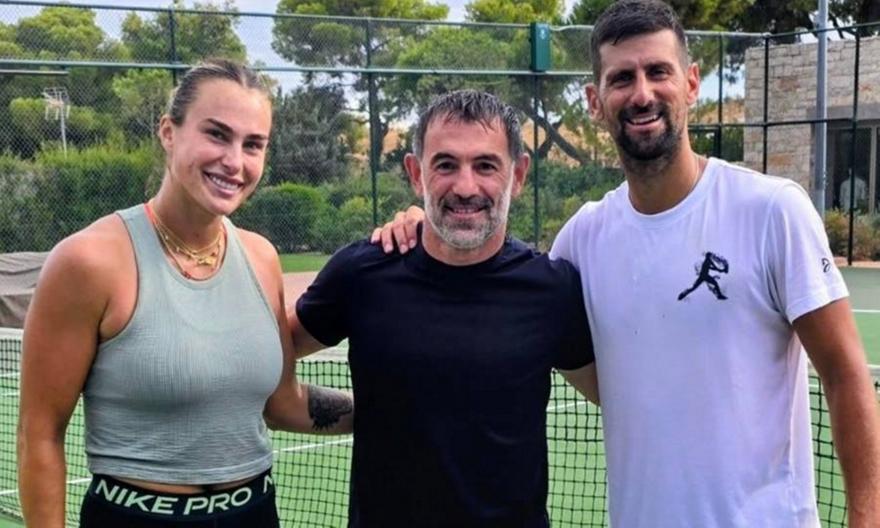 Ο «Τυπάρας» συνάντησε τον Σέρβο GOAT του τένις και τη Νο1 στον κόσμο Λευκορωσίδα αθλήτρια στην Αθήνα, ανεβάζοντας τη φωτογραφία με τη λεζάντα: «Στην Ελλάδα με τους καλύτερους».