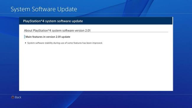 Σύμφωνα με τα patch notes του 2.01 Firmware Update, η διαδικασία επανέρχεται (μετά την εγκατάσταση της αναβάθμισης) στα φυσιολογικά της επίπεδα. Ο όγκος των δεδομένων της αναβάθμισης φτάνει τα 217.2 MB.