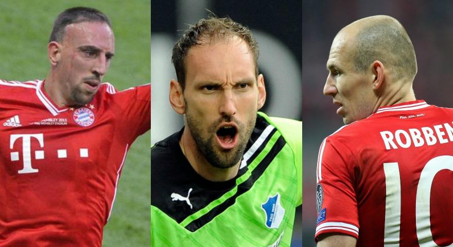 Arjen Robben: Ο ποδοσφαιριστής εμφανίζει ένδειξη αραίωσης στην κορυφή και το πρόσθιο τρίγωνο του προσώπου. «Το πρόβλημα είναι αρκετά εκτεταμένο. Ο Robben είναι υποψήφιος για μεταμόσχευση μαλλιών με τη μέθοδο FUE. Μετά την εμφύτευση μπορεί παράλληλα να χρησιμοποιεί τη λοσιόν μινοξιδίλης, μια ουσία που επιβραδύνει την τριχόπτωση στα εναπομείναντα μαλλιά».