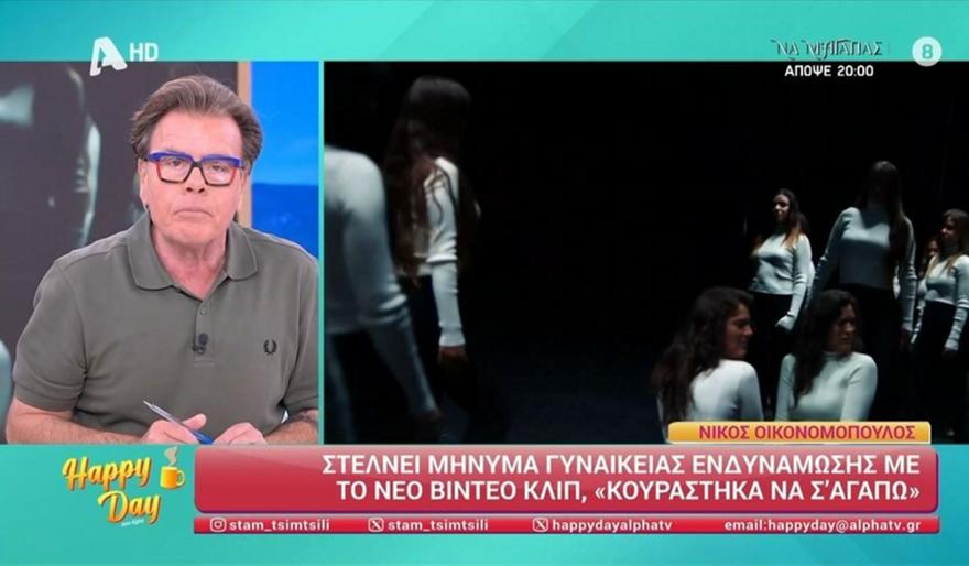 Το νέο βίντεο κλιπ του Νίκου Οικονομόπουλου για το τραγούδι του «Κουράστηκα να σ' αγαπώ» που μόλις κυκλοφόρησε με ένα σημαντικό μήνυμα γυναικείας ενδυνάμωσης παρουσίασαν μέσα σε ενα multi video στο Happy Day. Δείτε αναλυτικά εδώ