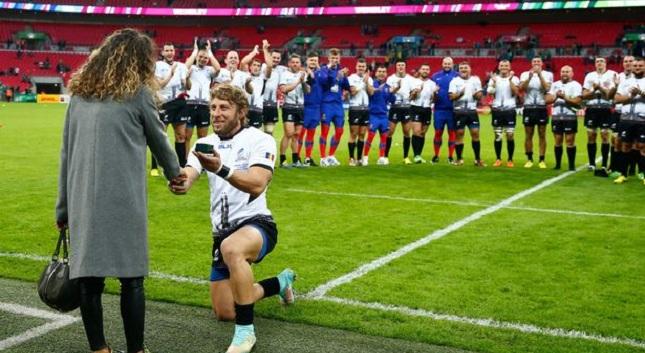 O έρωτας σκορ δε κοίτα και αυτό ισχύει στην περίπτωση του Florin Surugiu, ο οποίος μετά την ήττα της Ρουμανίας από την Ιρλανδία (με σκορ 44-10) σε αγώνα ράγκμπι έκανε πρόταση γάμου στην αγαπημένη του Alexandria μπροστά στους περισσότερους από 89 χιλιάδες φιλάθλους που βρέθηκαν στο στάδιο «Wembley».