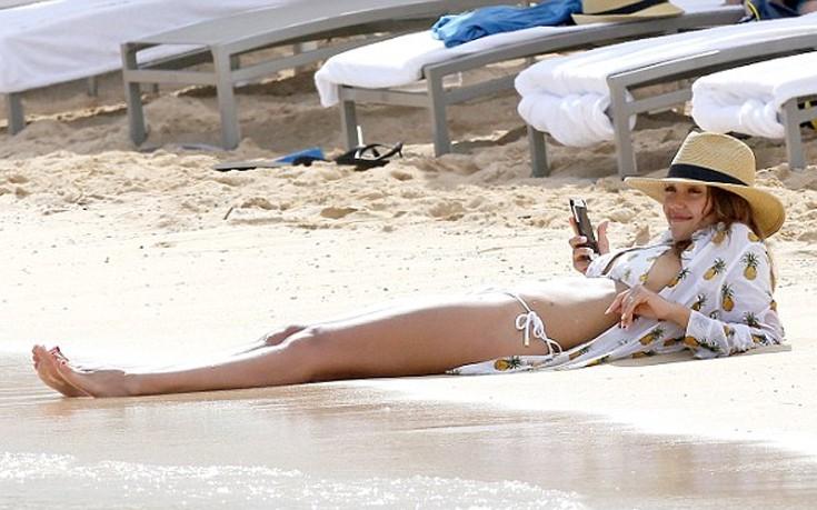 Η νέα εμφάνισή της στην παραλία με ένα λευκό μαγιό στολισμένο μα ανανάδες άφησε άφωνους τους λουόμενους.