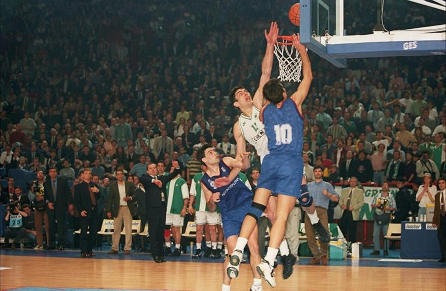 -Οι λεπτομέρειες της φάσης του αγώνα: Με τον Παναθηναϊκό στο 67-66 (αν και είχε βρεθεί στο 63-52 με 2:50 να απομένουν), πολλές λεπτομέρειες έγραψαν την ιστορία. Ο Ντομινίκ Γουίλκινς αστόχησε ατυχώς από κοντά, αλλά ο Στόγιαν Βράνκοβιτς πήρε το επιθετικό ριμπάουντ κι έβγαλε έξω με την ομάδα του να έχει «φρέσκα» 30 δευτερόλεπτα από τα 35 που απέμεναν. Ο Τζον Κόρφας ντρίμπλαρε για σχεδόν 20 δευτερόλεπτα μέχρι να δώσει την μπάλα, που στη συνέχεια χάνεται από τον Παναγιώτη Γιαννάκη. Η βουτιά απελπισίας του «Τεν-Τεν» δεν φέρνει αποτέλεσμα, αλλά ενώ οι άλλοι τρεις της πεντάδας έχουν σαστίσει, ο Βράνκοβιτς διανύοντας το γήπεδο από τη μια βολή στην άλλη ρακέτα σε χρόνο σπρίντερ και υπερπηδώντας τον πεσμένο Κόρφα, κόβει τον Μοντέρο. Το χρονόμετρο που έχει κολλήσει στα 4,9 δευτερόλεπτα για περίπου 8-9 δευτερόλεπτα, «ζωντανεύει» ξανά αλλά ο Παναγιώτης Γιαννάκης βάζει το χέρι του στην μπάλα του Χοσέ Λουίς Γκαλιλέα και το ματς τελειώνει.