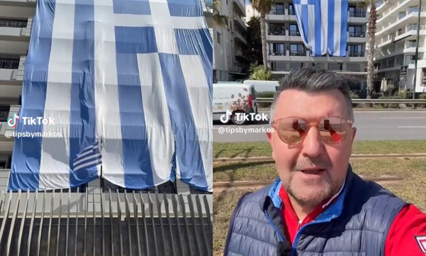 Ένα ξενοδοχείο στην παραλιακή «ντύθηκε» με μια τεράστια ελληνική σημαία, δημιουργώντας ένα μοναδικό θέαμα.