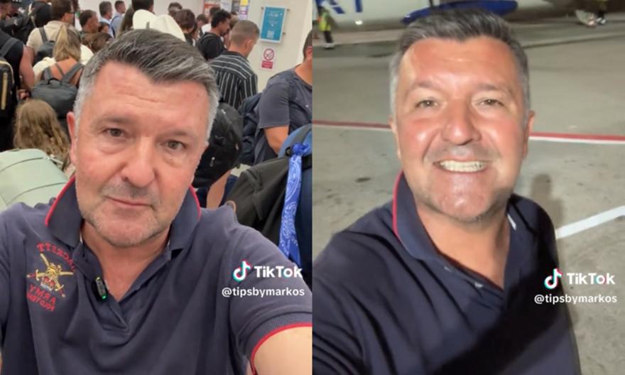 Ο Δημήτρης Μάρκος δημοσίευσε στο TikTok δύο βίντεο από το αεροδρόμιο της Μυκόνου, καταγράφοντας τις μεγάλες καθυστερήσεις που αντιμετώπισαν οι επιβάτες της πτήσης με προορισμό την Αθήνα.