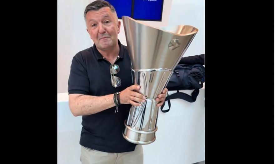 Ο Δημήτρης Μάρκος, ο οποίος βρέθηκε στο Αμπού Ντάμπι και μπόρεσε να σηκώσει το τρόπαιο της Ευρωλίγκας και... υπόσχεται ότι «του χρόνου θα την φέρουμε Πειραιά».