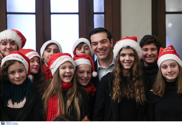 Νωρίτερα ο πρωθυπουργός είχε ακούσει τα κάλαντα στο Μέγαρο Μαξίμου από τους μαθητές του Μουσικού Σχολείου Αθήνας.
