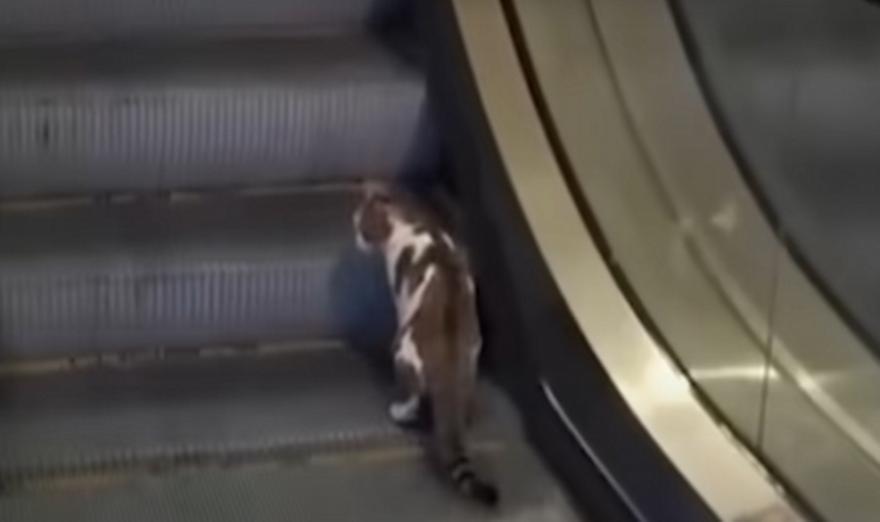 Συγκεκριμένα, η γάτα προσπαθεί να ανέβει από τις κυλιόμενες σκάλες, αλλά από τη λάθος πλευρά, με αποτέλεσμα να την κατεβάζει πάλι κάτω. Η γατούλα προσπαθεί να καταλάβει τι συμβαίνει και όλο αυτό συνεχίζεται για λίγη ώρα.