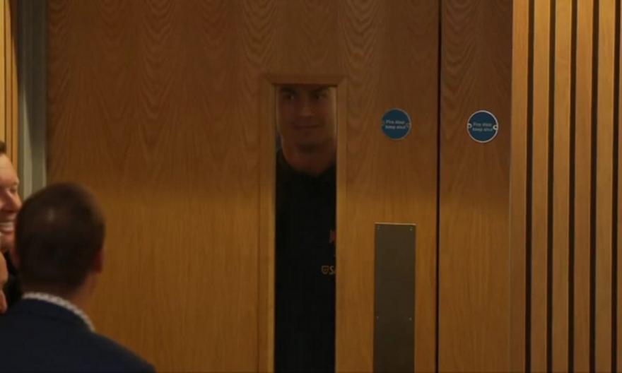 Οι δημοσιογράφοι, που τον αντιλήφθηκαν αμέσως, ξέσπασαν σε γέλια, ενώ ο Ρονάλντο μπήκε για λίγα δευτερόλεπτα στο δωμάτιο μόνο και μόνο για να… αστειευτεί με όλους, πριν επιστρέψει στα αποδυτήρια.
