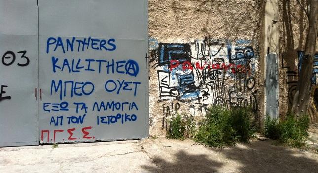 Έξω από την αίθουσα που έγινε η γενική συνέλευση, στο πάρκινγκ του γηπέδου της Νέας Σμύρνης, υπάρχουν γραμμένα με σπρέι στους τοίχους πολλά υβριστικά συνθήματα κατά του Αχιλλέα Μπέου.