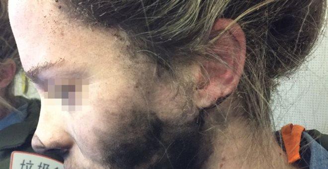 Φωτογραφίες που δημοσίευσε το Γραφείο Ταξιδιωτικής Ασφάλειας της Αυστραλίας, η νεαρή κοπέλα εικονίζεται με μαυρισμένο πρόσωπο και φουσκάλες σε ένα χέρι μετά το περιστατικό.