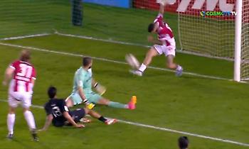 Η μπάλα γκέλαρε ακριβώς μπροστά από τον Μπαραγκάν, με τον Ισπανό κίπερ να μπερδεύεται με αποτέλεσμα να μαζεύει την μπάλα από τα δίχτυα του και τον Χατζηστραβό να πανηγυρίζει το 1-0.