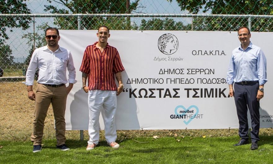 Σε μία ειδική εκδήλωση που διοργανώθηκε για το σκοπό αυτό, το γήπεδο εγκαινιάστηκε από τον Chief Marketing Officer της Novibet, κ. Χριστόφορο Μποζατζίδη, τον Δήμαρχο Σερρών κ. Αλέξανδρο Χρυσάφη και τον ίδιο τον Πρεσβευτή του προγράμματος Giant Heart, Κώστα Τσιμίκα. Θέλοντας μάλιστα να τιμήσει το πρόσωπο του κορυφαίου αθλητή ο οποίος κατάγεται από την τοπική κοινωνία, ο Δήμος Σερρών με απόφασή του έδωσε στο γήπεδο το όνομα του Κώστα Τσιμίκα.