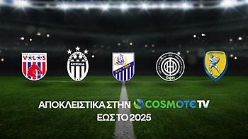 Οι υπόλοιπες οκτώ ομάδες θα βρίσκονται στα κανάλια της Cosmote TV. Ήτοι ο Ολυμπιακός που είχε ήδη συμβόλαιο, οι ΑΕΚ, Παναθηναϊκός, ΟΦΗ, Παναιτωλικός, Λαμία και Βόλος που ανανέωσαν, καθώς και η έτερη νεοφώτιστη, Κηφισιά, η οποία υπέγραψε εσχάτως.