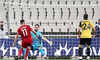 Πέναλτι σε χέρι του Ρούμπεν Σεμέδο ζήτησαν στο 38' οι παίκτες της ΑΕΚ, όμως ο διαιτητής έδειξε να συνεχιστεί το παιχνίδι.